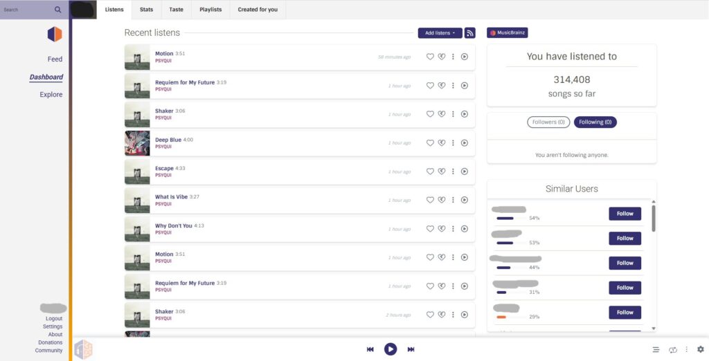 設定は手間ですが、この記事で1人でもListenBrainzの登録者が増えると望外の喜びです。